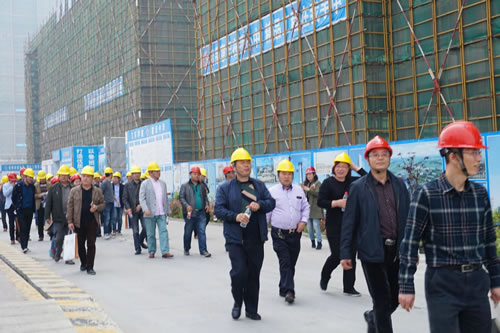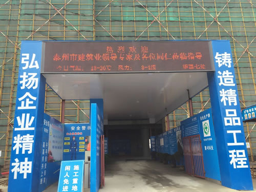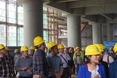421日下午,江蘇華建蘇北分公司承建的泰州金融服務中心現場,彩旗獵獵,熱鬧非凡,泰州市創精品工程觀摩會隆重舉行,泰州市建工局副局長王京陵以及泰州市各市(區)建筑業主管部門工程創優負責人、建筑業協會負責人、全市二級以上資質企業總工程師、技術負責人、創優企業總工程師、項目經理、技術負責人等共計400人參加了觀摩活動,與會人員對江蘇華建在建設金融服務中心興業大廈過程中創下了江蘇泰州地區多個之最表示了濃厚興趣,多個之最包括:高度最高(地上58層、設計高度:248m),施工速度最快(4天一層、創造了建筑工程施工的“泰州速度”), 施工工藝、施工設備、施工材料等最新采用;現場施工管理水平、工程質量、文明施工也得到了與會人員的一致贊揚。這是泰州全市今年以來舉辦規模最大的一場觀摩活動。
