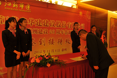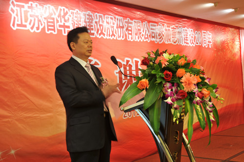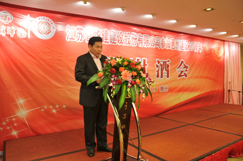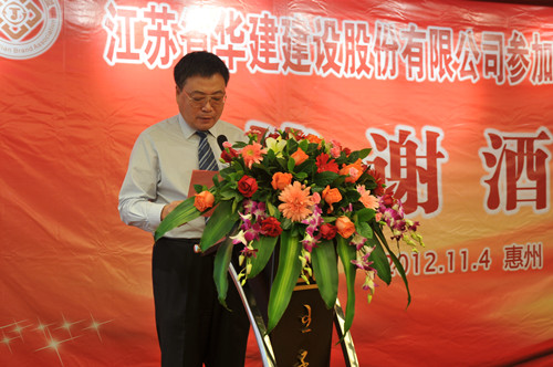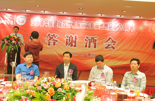 114,公司在惠州隆重舉辦參加惠州建設20周年答謝酒會,副董事長、總經(jīng)理宗有農(nóng)主持并作開場致辭?;葜菔杏嘘P政府部門、部分合作方企業(yè)的負責人,華建聯(lián)盟成員單位負責人,公司董事、監(jiān)事和高管等130余人出席酒會?;葜莨究偨?jīng)理華恒榮介紹了公司參加惠州建設二十年的有關情況。惠州市工商聯(lián)主席、恒宇實業(yè)發(fā)展公司董事長楊滿芳代表合作方發(fā)言,惠州市住房和城鄉(xiāng)規(guī)劃建設局副局長陳訓政代表政府主管部門致辭,分別對江蘇華建進惠施工二十周年表示祝賀。公司董事長陸金龍代表總部對惠州市有關政府部門、相關合作方和社會各界人士給予公司的關心和支持表示誠摯的感謝,并表達了進一步加大支持力度、加強戰(zhàn)略合作、加快科學發(fā)展的意愿。