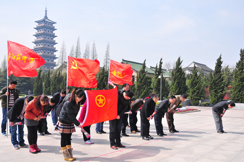 總部開展祭掃革命烈士墓活動 時間:2013-04-03 4649 4月3日,總部機關黨支部和團委聯合開展祭掃革命烈士墓活動,總部機關、華建置業20余名同志參加。紀委副書記、黨辦主任陳緒寶主持活動,副總經理兼總工程師程杰帶領大家向烈士紀念碑三鞠躬,并敬獻了鮮花,隨后大家共同參觀了烈士英雄事跡展。