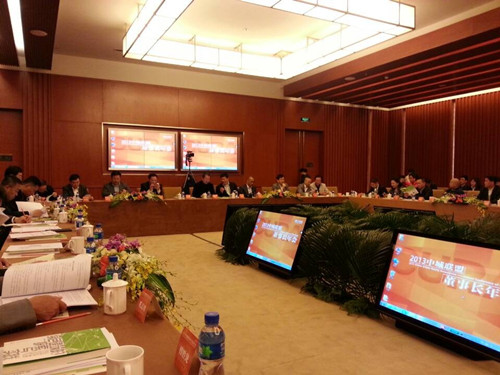 在這次會議上,中糧地產集團董事長周政首先致歡迎辭,中糧集團董事長寧高寧親自參與接待,陪同參觀忠良書院和中糧博物館,并與大家進行了觀點分享。中城聯盟輪值主席、青島新地集團董事長漆洪波在會上致辭并作了一周年工作簡報。中城聯盟有關專業委員會主任、相關單位董事長向炯、陳勁松、陳俊、顏明等分別就2013年中城聯盟聯合采購工作、產品“時權交換”、 “聯合招商”、商業資源整合等做了專題匯報。會上,華遠集團董事長任志強、萬通集團董事長馮侖就當下地產形勢做了重點發言,陸金龍董事長與各會員單位董事長一道就宏觀經濟環境、房地產發展走勢、中城聯盟商業資源整合等話題進行了廣泛的交流探討。