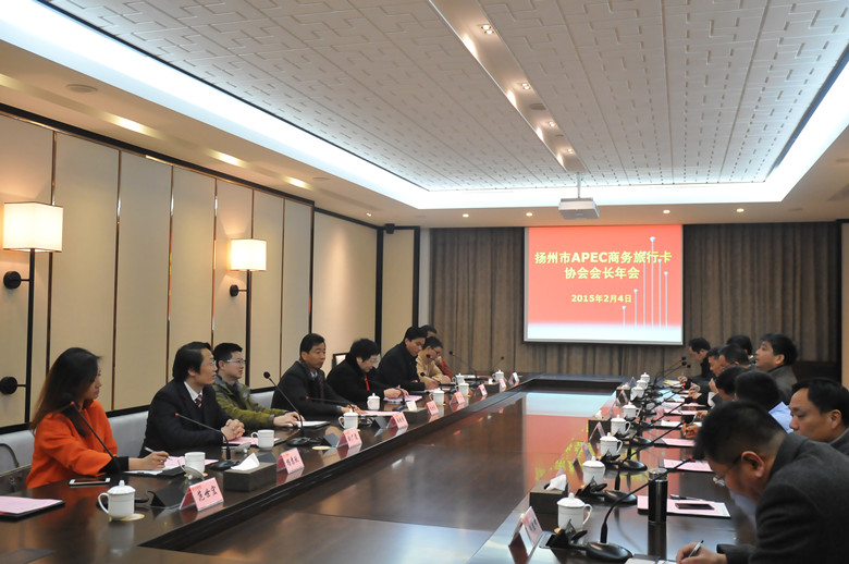 2月4日下午,揚州市APEC商務旅行卡協會會長年會在華建展示中心召開,18名會長、副會長單位代表參加會議,協會會長、江蘇華建董事長陸金龍和名譽會長、市外辦主任鄧清出席會議。
