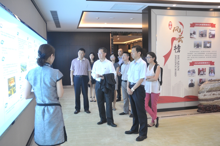 在華建企業展示中心,總領事饒有興致地參觀了展廳,并詳細詢問了華建與新加坡企業在蘇州的項目合作以及蘇揚公司在新建設情況。隨后陸董事長和總領事就新加坡地產形勢以及東南亞地區社會結構、建設環境等方面的內容進行了交談??傤I事表示,華建應充分做好業務準備,以新加坡為跳板,逐步將業務幅射到東南亞地區,不斷做大做強海外業務,他本人也很樂意為華建牽線搭橋,助推華建進一步“走出去”。陸董事長對總領事表示感謝,他認為華建與新加坡企業在國內外都有著良好合作,希望在“一帶一路”大戰略指引下,華建能夠與新加坡企業互信交流,深入合作,不斷拓展新領域,開發新市場。
