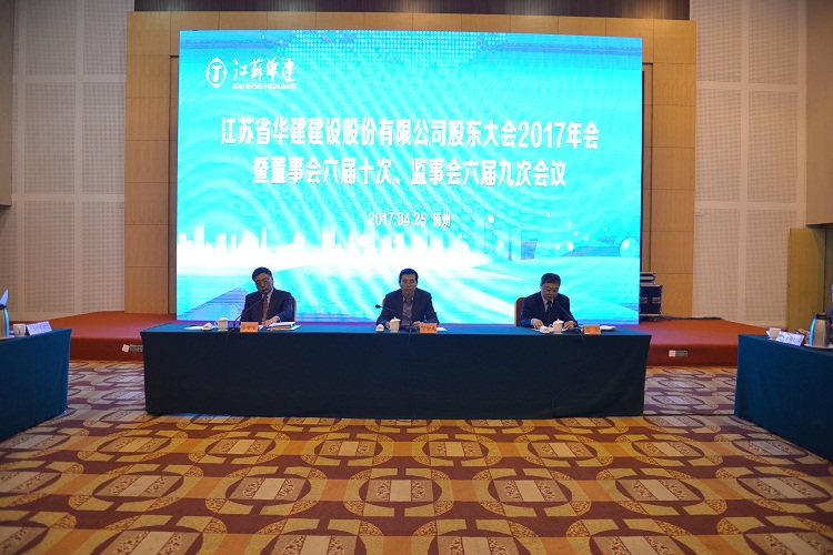 4月25日上午,江蘇華建股東大會2017年會在揚州召開。各股東代表和公司董事、監(jiān)事出席會議,公司高級管理人員、各分支機構(gòu)和總部各部室負責人、律師團律師列席會議,王宏董事長主持會議,揚州市副市長何金發(fā)出席會議并致辭。