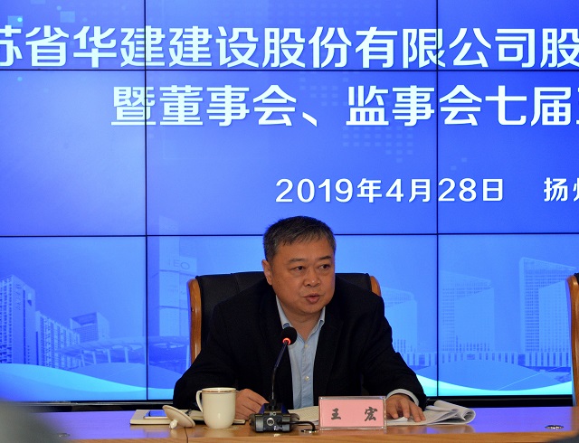4月28日,江蘇華建股東大會2019年會暨董事會、監(jiān)事會七屆五次會議在揚州華城科技廣場召開。公司股東單位代表和董事、監(jiān)事出席會議,公司高級管理人員、各分支機構和總部各部室負責人、律師團律師列席會議,王宏董事長主持會議,揚州市副市長何金發(fā)到會并致辭。