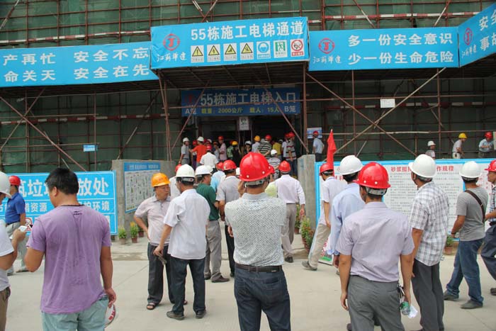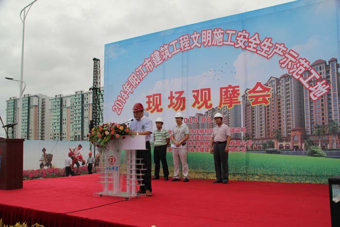 6月17日上午,“2014年陽江市建筑工程文明施工安全生產(chǎn)示范工地現(xiàn)場(chǎng)觀摩會(huì)”,在我公司第一項(xiàng)目部施工的陽光馬德里二期工程項(xiàng)目現(xiàn)場(chǎng)舉行。陽江市建設(shè)局副局長(zhǎng)馮成富、質(zhì)量安全監(jiān)督站站長(zhǎng)林子歡、書記何聲海和各縣(市、區(qū))住建局安全生產(chǎn)分管負(fù)責(zé)人、安監(jiān)站站長(zhǎng)以及所有施工、監(jiān)理單位負(fù)責(zé)人、安全管理人員近300人參加觀摩會(huì)。