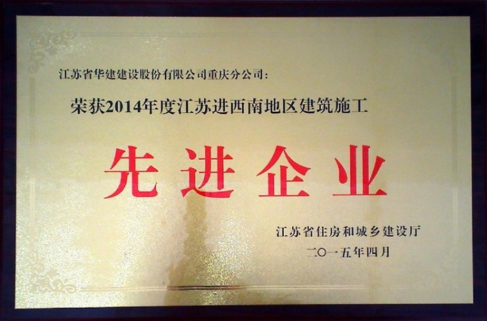 49日,2015年江蘇進西南建筑業工作會議在重慶召開,江蘇省住建廳建管局、重慶市建委有關領導出席會議。會議聽取了省廳駐西南辦事處2014年工作報告,同時對過去一年業績突出、表現優異的一批企業和個人進行了表彰。江蘇華建重慶分公司榮獲“2014年度江蘇進西南地區建筑施工先進企業”稱號,重慶分公司副總經理嚴正濤、二處主任余廣分別被表彰為2014年度江蘇出省施工優秀企業經理和先進個人,嚴正濤、黃橋獲評“優秀黨務工作者”。重慶分公司總會計師張勝濟代表公司在會上作了“適應新常態,打造在渝發展新模式”的交流發言。
