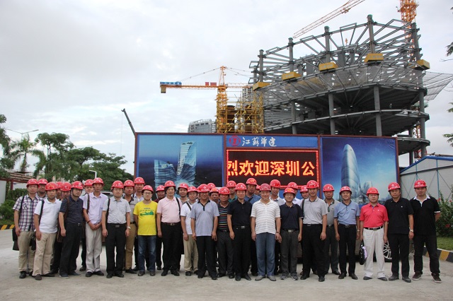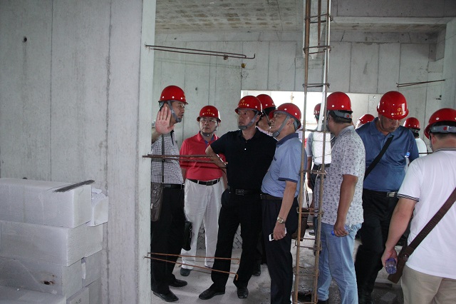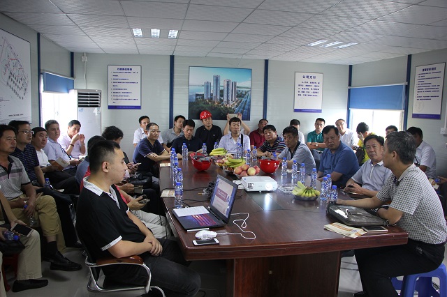 9月8日,在珠海公司總工程師周學(xué)軍陪同下,由深圳公司常務(wù)副總經(jīng)理、總工程師吳碧橋帶隊,深圳公司各工程處生產(chǎn)主任、技術(shù)主任、項目經(jīng)理等一行33人到珠海公司承建的帝景灣山莊和晉和天慶花園項目觀摩交流鋁合金模板施工技術(shù)。周總通過圖文并茂的PPT講解和現(xiàn)場實地觀摩詳細介紹了鋁合金模板施工技術(shù)特點以及與傳統(tǒng)木模板施工的差別,對施工過程關(guān)鍵節(jié)點做法、成本控制做了講解。雙方人員針對細節(jié)和質(zhì)量控制問題進行了深度交流。