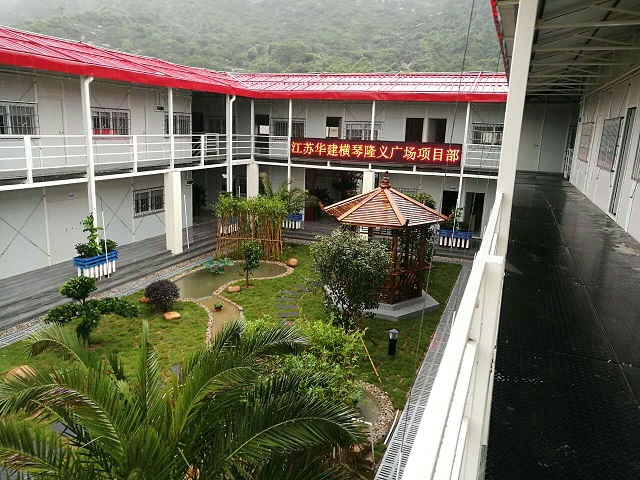 第五項目部負責人陳建表示,在該項目進場之初,就秉承“綠色、環保、節能”的理念,項目部園林景觀的打造全部采用可回收、循環利用的材料。花盆采用廢模板制成,水池循環供水,生活區照明全部采用節能燈,淋浴設施采用空氣能熱水器,空調采用節能產品;并將具有揚州特色的園林景觀融入其中,進行精心布局、合理規劃,將其打造成為工地上的微縮版揚州園林,不僅展示出揚州建筑企業對外的良好形象,更為員工營造一個溫馨舒適的綠色家園。
