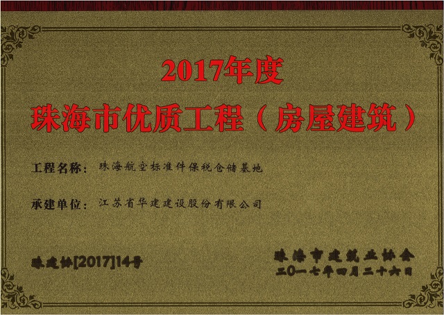 公司2項(xiàng)目獲評珠海市房屋建筑優(yōu)質(zhì)工程 時間:2017-05-16 4034 近日,珠海市建筑業(yè)協(xié)會發(fā)文公布2017年度珠海市優(yōu)質(zhì)工程名單,我司承建的珠海航空標(biāo)準(zhǔn)件保稅倉儲基地和丹田廣場二期的2個項(xiàng)目榜上有名。