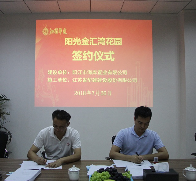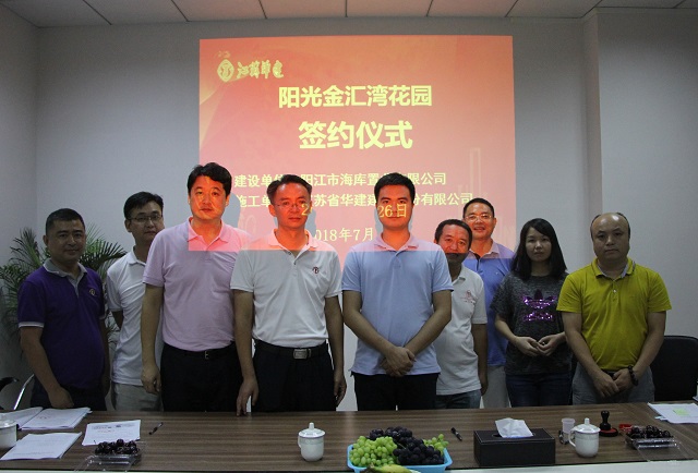 公司新簽1項目,造價1.66億元 時間:2018-07-27 4806 7月26日下午,陽光金匯灣花園施工總承包合同在陽江市海庫置業有限公司會議室成功簽約,項目開發商陽江市海庫置業有限公司總經理黃立衡,珠海區域公司總經理呂方達出席簽約儀式。 該項目位于陽江市江城區,總建筑面積約10.5萬平米,由13棟商住樓組成,造價約1.66億元,由第一項目部施工。