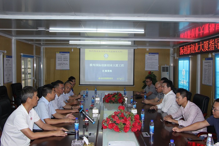 簽約儀式后,全體與會人員前往橫琴創新創業大廈項目現場,聽取了項目部關于項目概況、管理目標、總體施工部署、項目進展情況的簡短匯報,雙方就項目工期節點、創優目標、團隊合作等進行了座談交流。