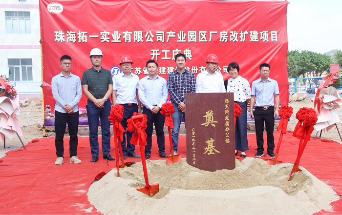 珠海拓一產業園區廠房改擴建項目舉行開工儀式 時間:2019-11-03 2679 11月2日,公司承建的珠海拓一實業有限公司產業園區廠房改擴建項目舉行隆重的開工儀式。 珠海拓一實業有限公司產業園區廠房改擴建項目,擴建項目建筑總面積為19088.9平方米,其中新一號廠房建筑面積為19050.68平方米(地上建筑面積為17019.75平方米,地下建筑面積為2030.93平方米);門衛室建筑面積為38.22平方米,工程暫定價約4600萬元,改建項目正在洽談中。