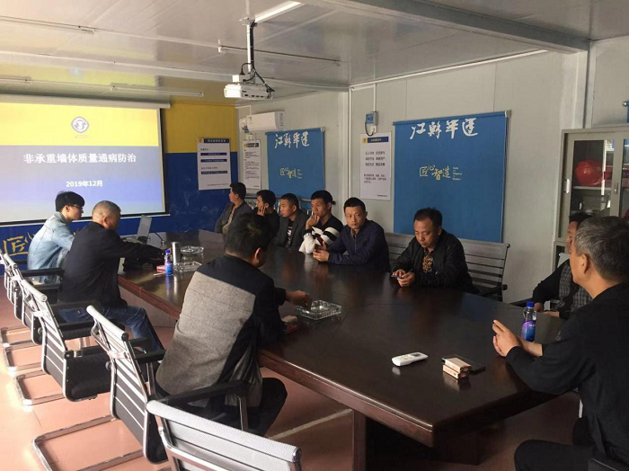 12月21日,珠海分公司在航粵電氣項目部組織召開砌體、外墻飾面工程質量通病防治交流會,公司副總經理、總工程師周學軍攜技術質量處赴項目部對項目現場相關施工人員進行培訓。