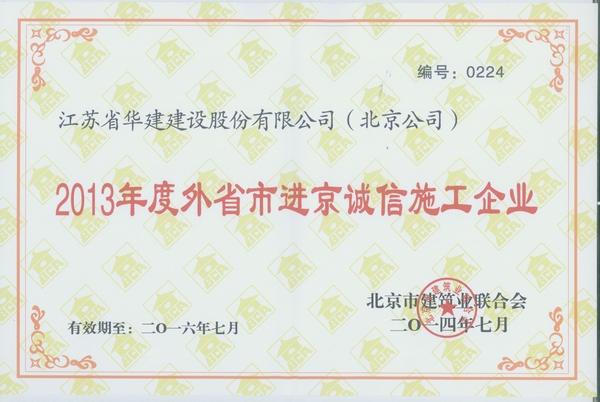日前,江蘇華建北京公司被北京市建筑業(yè)聯(lián)合會(huì)授予“北京建設(shè)行業(yè)誠(chéng)信企業(yè)”稱號(hào)。近年來(lái),北京市...