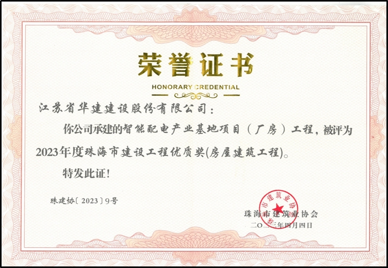 根據珠海市建筑業協會珠建協(2023)9號文件,由珠海分公司承建的智能配電產業基地項目被評...
