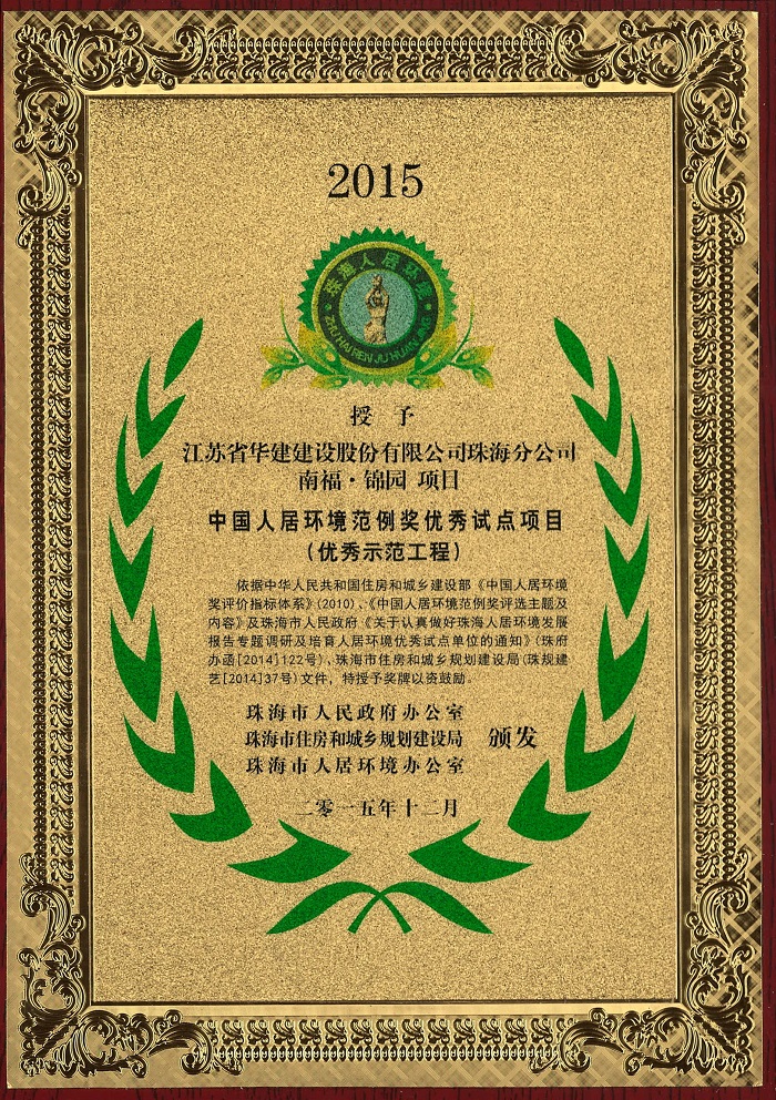 南福錦園榮獲中國人居環(huán)境范例獎優(yōu)秀試點(diǎn)項(xiàng)目(優(yōu)秀示范工程)