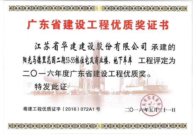 2016年度陽光馬德里53-55棟建設(shè)工程廣東省優(yōu)質(zhì)獎