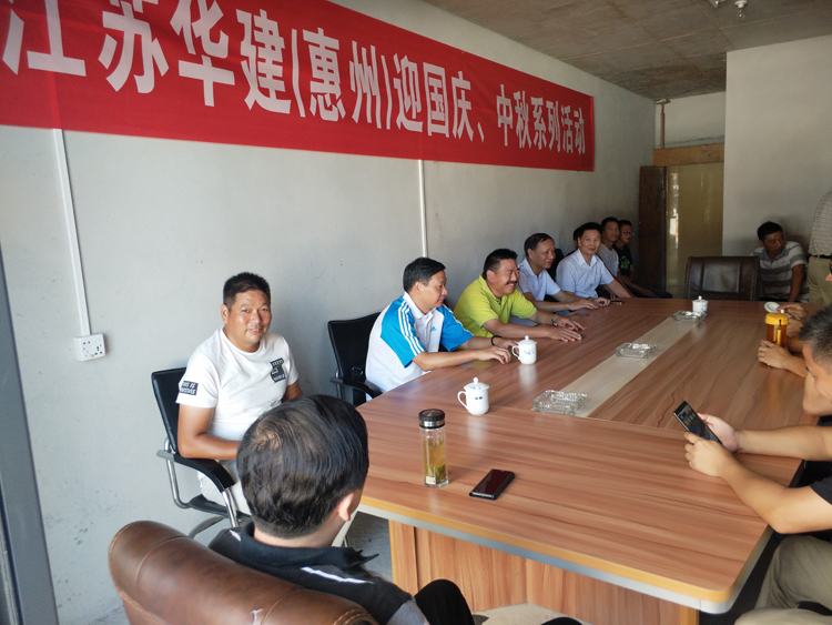 喜迎國慶、中秋,促進交流、互動 時間:2017-10-06 2792 10月3日,惠州公司機關全體在惠人員在總經理周群利的帶領下,前往公司直管項目部對節日堅守崗位的人員進行了慰問,并與他們進行了拓展、益智等互動活動。活動期間,周總與項目部人員進行了座談,并代表公司對節日堅守崗位的人員表示親切的慰問,詳細了解他們節日的工作、生活安排情況。同時要求項目部負責人要合理安排好大家的工作和生活,讓他們過一個喜慶、祥和的節日。會后,公司機關全體人員與項目部在崗人員開展了羽毛球、拔河、摜蛋、象棋等拓展、益智活動。通過這次活動,加強了交流,增加了了解,提升了凝聚力。