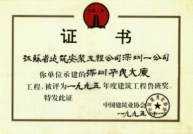 華民大廈竣工后先后獲:深圳市優(yōu)質樣板(第一名)、江蘇省優(yōu)質工程(金牌)、江蘇省揚子杯、江蘇省名牌工程、中國建筑業(yè)最高魯班獎。