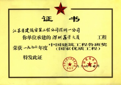 荔景大廈獲:深圳市優質樣板工程(第一名)、江蘇省優工程(金牌)、江蘇省揚子杯獎、江蘇省名牌工程、揚州市瓊花杯獎、1996年度建筑工程魯班獎。