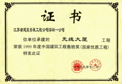 無線大廈(現(xiàn)名國通大廈)位于福田區(qū)新洲,建筑面積73069M2,高度201.5M,地下室2層,地上43層,是一座高智能化的電信寫字樓,結構設計為鋼筋砼框架一筒體結構,8-32層為無粘結預應力樓板砼,工程總造價6億元。工程于1995年6月開工,1997年12月竣工,施工中主要應用了無粘結預應力砼、高強泵送砼、粗直徑鋼筋連接、外墻干掛花崗巖等新技術。榮獲深圳市、廣東省、江蘇省的優(yōu)質(zhì)樣板工程,“江蘇省新技術應用示范工程”、江蘇省“揚子杯”獎和99年度國家“魯班獎”。