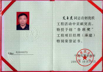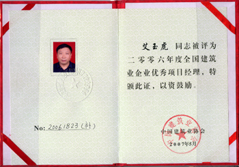 艾玉虎同志對事業(yè)執(zhí)著,做事誠信,管理上路,一項項優(yōu)質(zhì)工程從他手中接二連三誕生。1996—2011年15年時間里,艾玉虎帶領(lǐng)他的團隊在深圳共承擔(dān)施工任務(wù)23項,其中10萬平方米以上規(guī)模工程達7項。1997年,在他帶領(lǐng)下,在1.3公里長布吉河箱涵上建起了超乎想象、令人欽佩的19棟商住樓,受到深圳市布吉鎮(zhèn)鎮(zhèn)政府的表揚和嘉獎。擔(dān)任項目經(jīng)理的深圳國際商會中心工程和深圳榮超經(jīng)貿(mào)中心工程榮獲全國建設(shè)工程最高質(zhì)量榮譽魯班獎。高度273米、建筑面積13萬平方米、62層的綠景紀元大廈工程為深圳市超高層標志性建筑。目前,他和他的團隊又在意氣奮發(fā),沖刺著人生和事業(yè)的新高度。