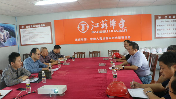 1223下午,海南省建設工程質量安全監督管理局丁飛局長一行五人來我公司總承包施工的海南省第一中級人民法院審判大樓工程及公司機關進行“三嚴三實”專題調研。調研組一行就政府簡政放權,加強事中事后監管,實行差別化管理、對2A評選、3A推薦、優質結構工程評選以及誠信手冊的建立、檢測行業亂象等廣泛聽取意見。公司副總、海南分公司總經理王宏簡要介紹了公司基本情況、發展歷程和2015年的主要工作,高總和相關部門負責人就調研內容和調研組進行了深入的互動交流,丁局長表示會認真研究我公司提出的寶貴建議,大力推進對象江蘇華建這樣優質企業的優質服務,共同打造海南建筑市場良好秩序!