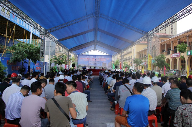 繼“2017年陽(yáng)江市建筑工程安全生產(chǎn)文明施工示范工地現(xiàn)場(chǎng)觀摩會(huì)”之后,9月6日,陽(yáng)江市“2017年建筑施工質(zhì)量月和工程質(zhì)量安全提升活動(dòng)啟動(dòng)儀式暨現(xiàn)場(chǎng)觀摩交流會(huì)”再次在我公司總包承建的陽(yáng)光馬德里項(xiàng)目現(xiàn)場(chǎng)隆重舉行。陽(yáng)江市住房規(guī)劃建設(shè)局分管質(zhì)量安全副局長(zhǎng)張牛、市質(zhì)安監(jiān)站站長(zhǎng)林子歡、市建筑協(xié)會(huì)會(huì)長(zhǎng)梁榮照,市建管科、質(zhì)安監(jiān)站全體人員,各縣(市、區(qū))住房規(guī)劃建設(shè)局分管質(zhì)量安全副局長(zhǎng)、建管股股長(zhǎng)、質(zhì)監(jiān)站站長(zhǎng),市直各施工企業(yè)和監(jiān)理企業(yè)分管工程質(zhì)量領(lǐng)導(dǎo)、質(zhì)安部門負(fù)責(zé)人,市區(qū)在建工程建設(shè)單位代表,施工單位項(xiàng)目經(jīng)理、質(zhì)量員,監(jiān)理單位項(xiàng)目總監(jiān)和專業(yè)監(jiān)理工程師,各縣(市、區(qū))在建重點(diǎn)項(xiàng)目建設(shè)單位代表、施工單位項(xiàng)目經(jīng)理、監(jiān)理單位項(xiàng)目總監(jiān)等400余人參加大會(huì)并觀摩陽(yáng)光馬德里二期56-61棟施工現(xiàn)場(chǎng)。