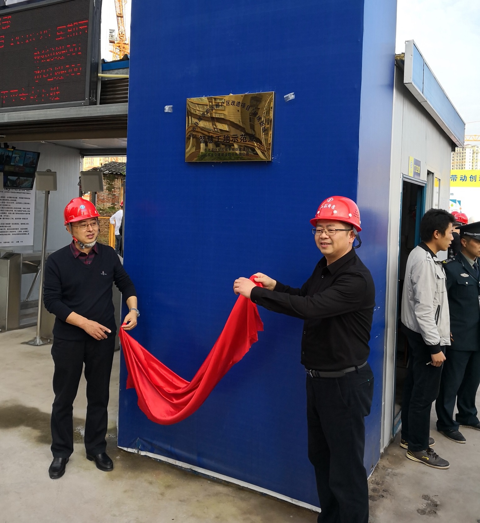 隨后,嚴(yán)正濤總經(jīng)理和陳宗春局長共同為錦繡新城智慧工地示范點(diǎn)揭牌。
