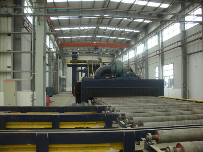 本流水線預(yù)處理鋼板規(guī)格范圍為寬度≤4000mm,長度≤18000mm,厚度6-50mm。本流水線除銹質(zhì)量等級符合GB8923-88  Sa2.5,噴漆漆膜厚度15-25,表面粗糙度40-70,預(yù)處理速度約為4m/min。